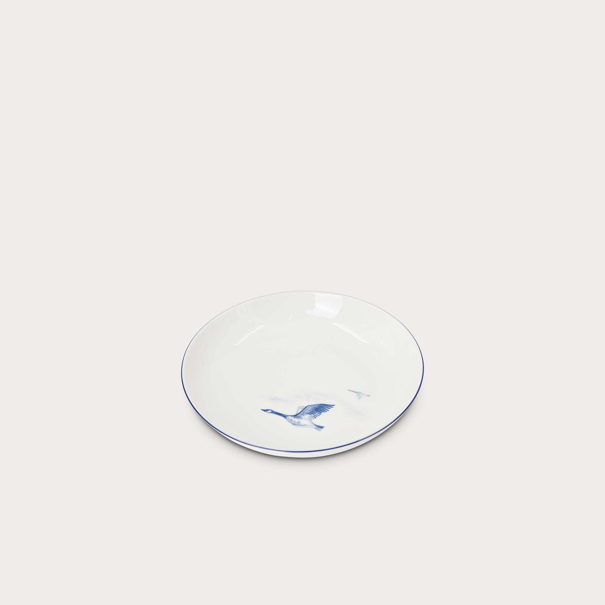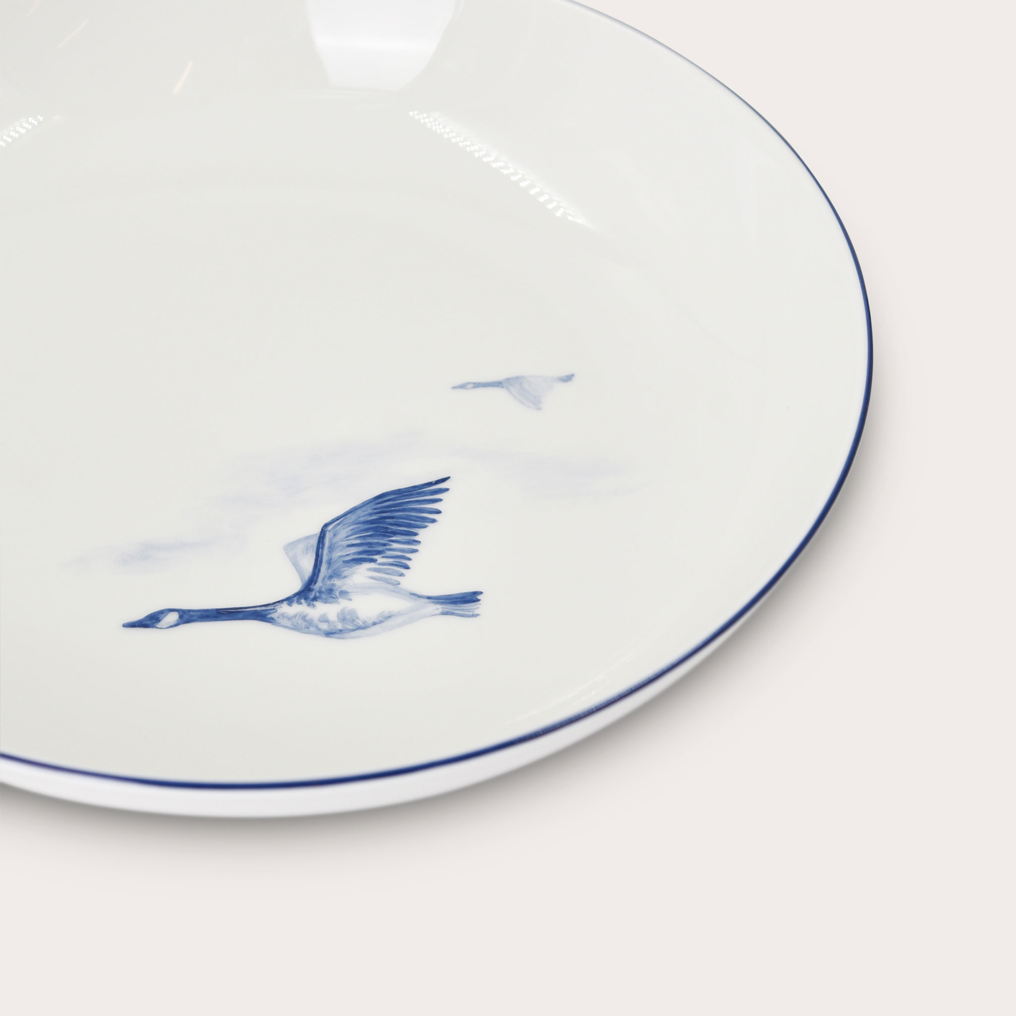 - Surface:Handpainted Canada Goose with Blue Rim Porcelain