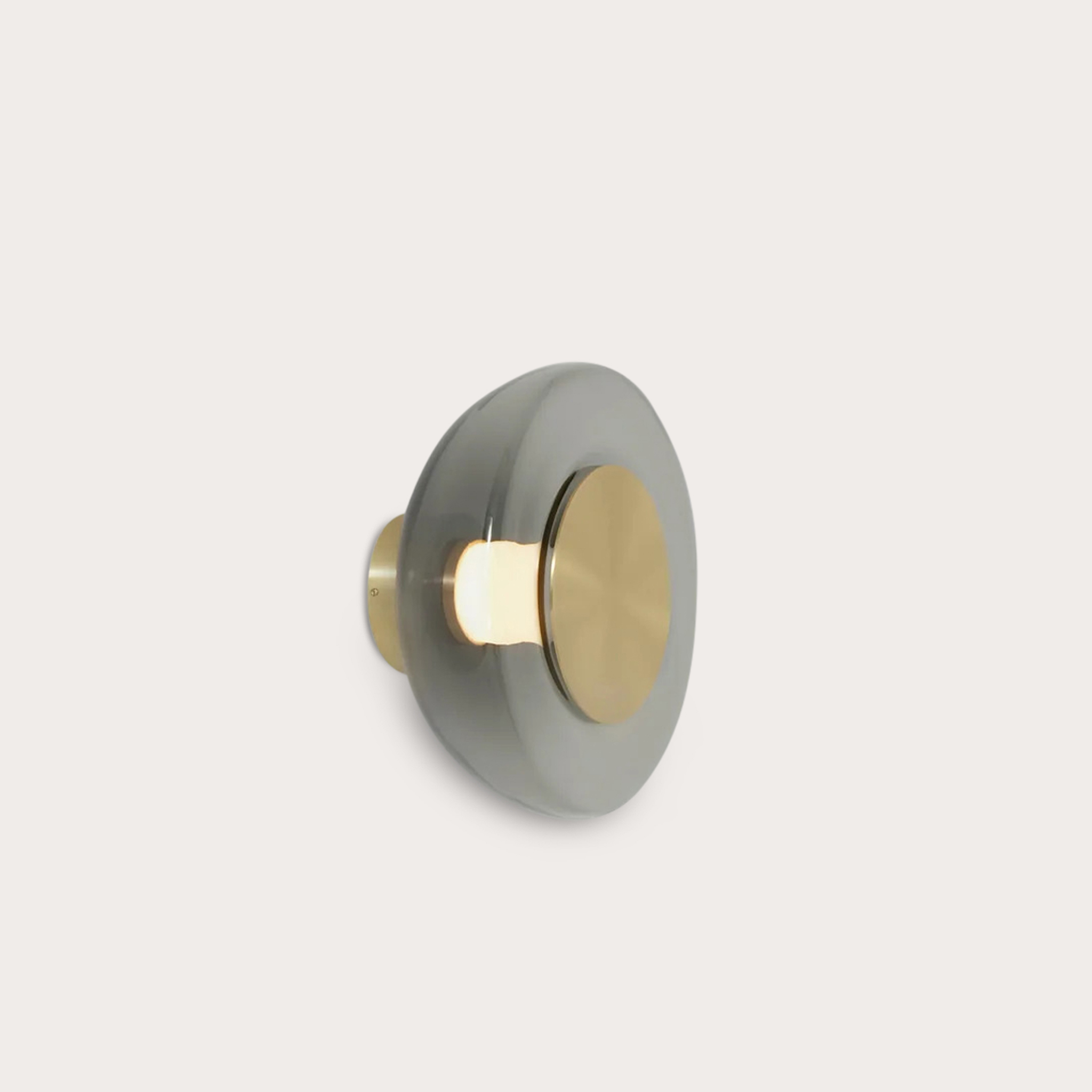 - Surface:Satin Brass with Smoked Glass Shade