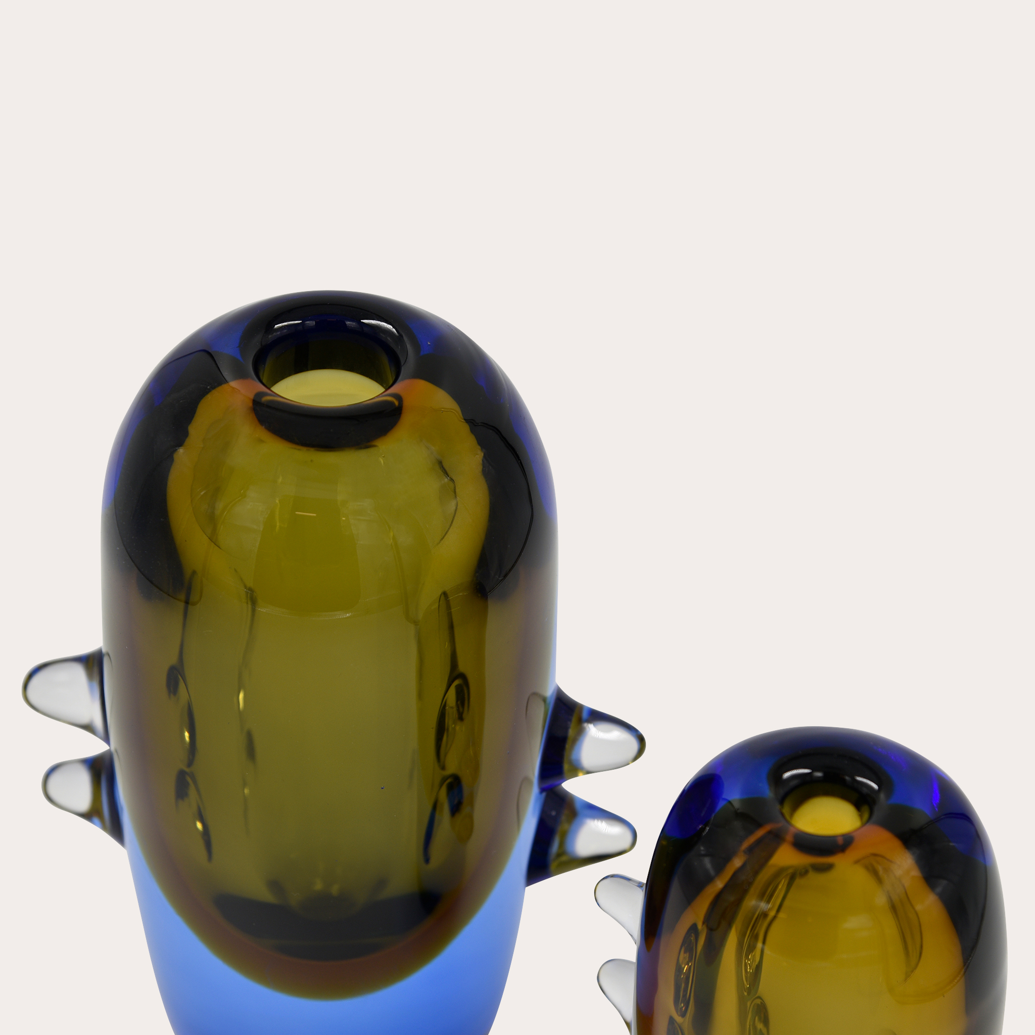 - Surface:Golden-Brown and Pastel-Blue Glazed Glass with Crystal